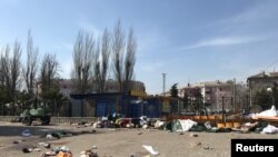 Jounalis AFP yo te wè omwen 30 kadav nan sak devan estasyon an. Yo te ilitize moun sa yo tankou barikad pou proteje yo.