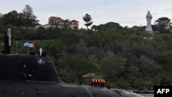 Fotogwaf AFP yo te wè Soumaren nikleyè "Kazan" nan lanmè a tou.