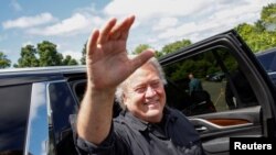 Steve Bannon, yon neg ki alye Trump depi lontan jwenn liberasyon li nan prizon apre li finn sevi yon santans 4 mwa. Lajistis te kondane l poutet li te defye yon demann Kongre Etazini an te fe pou l konparet devan li pou reponn kestyon sou atak patizan Trump yo te lanse kont Capitol la (syej palman Etazini) 6 Janvye 2021.